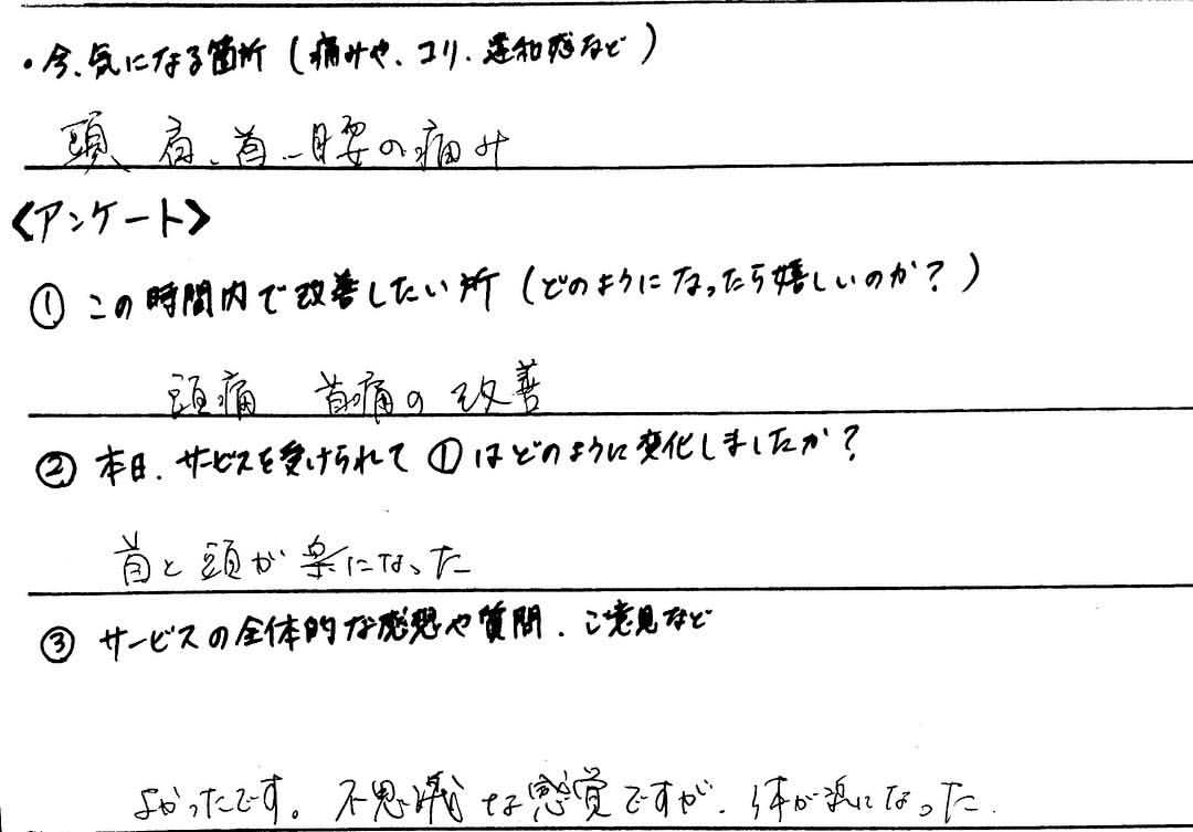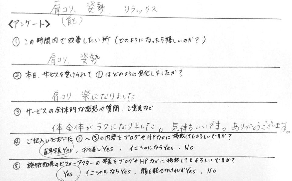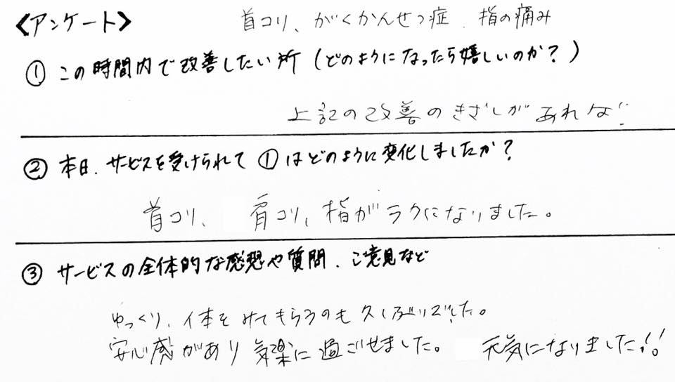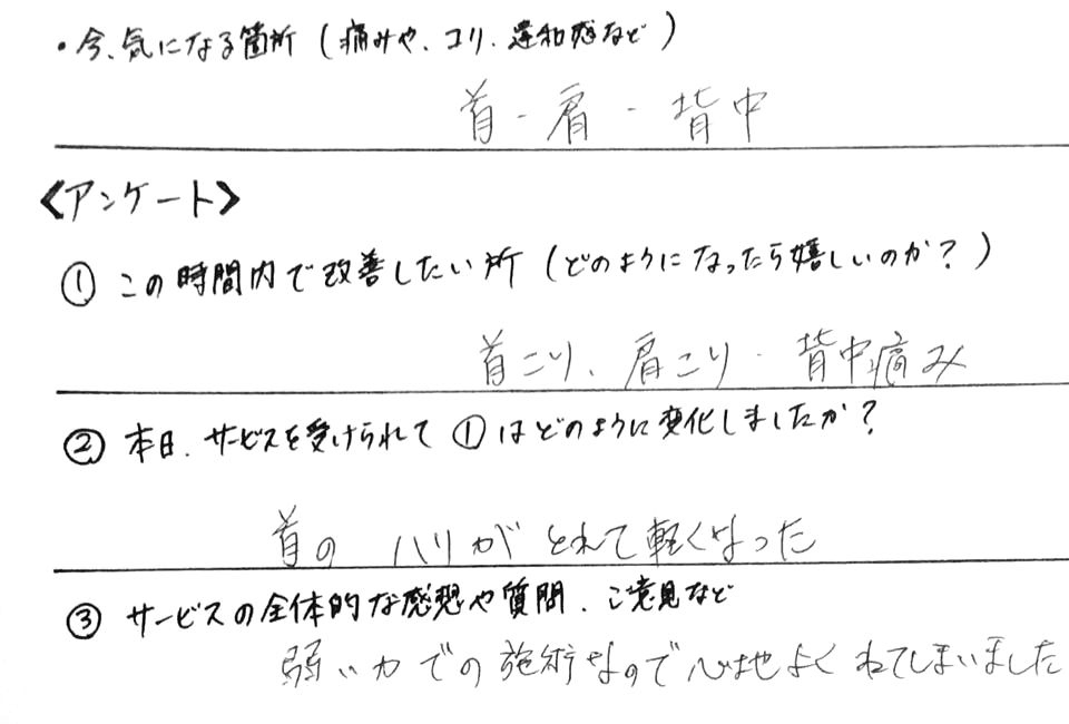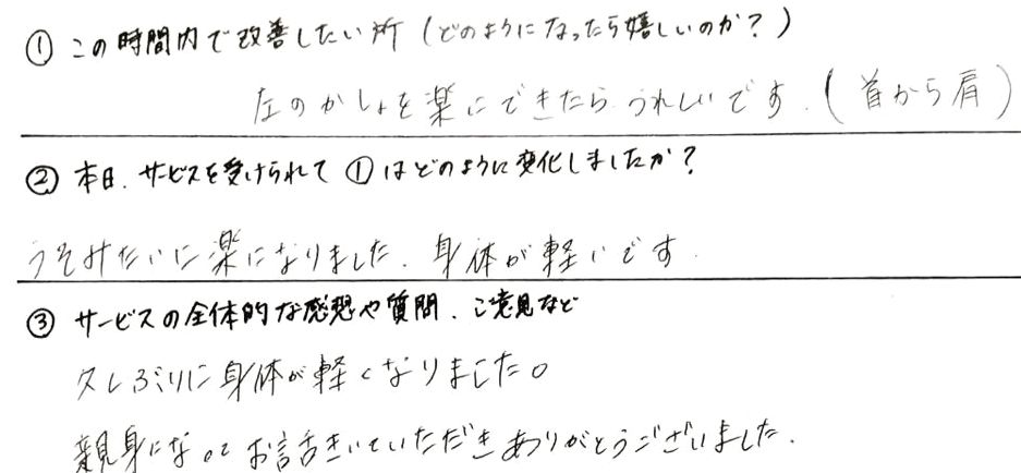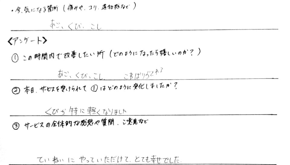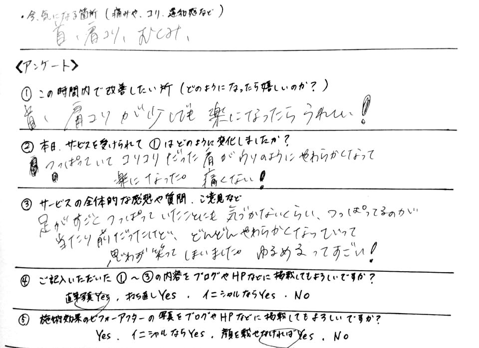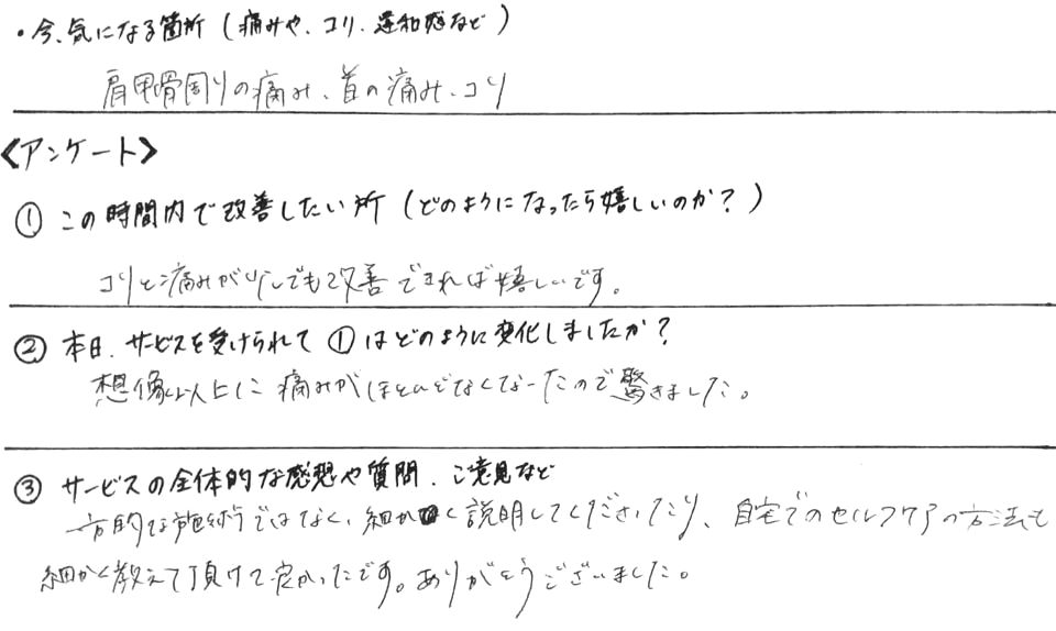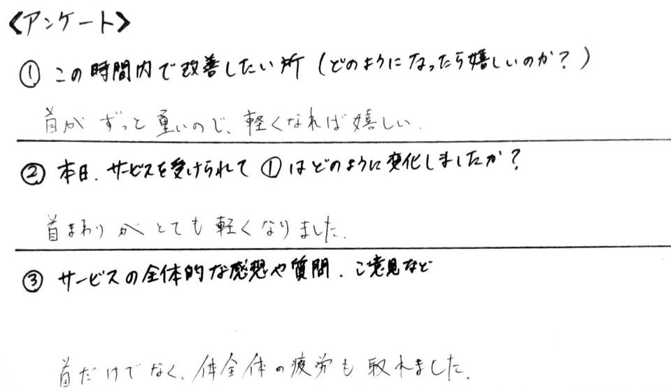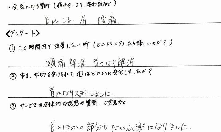 ●首こり改善・お客様の感想